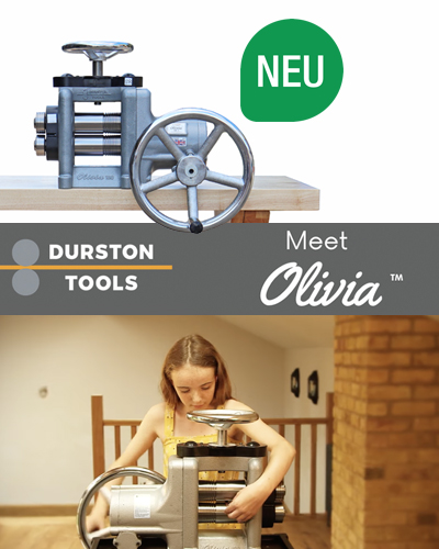 Die neuen Olivia Walzmaschinen aus dem Hause Durston mit neuem zum Patent angemeldeten Design und einem 50:1 Untersetzungsgetriebe, welches die Bedienung noch einfacher macht.