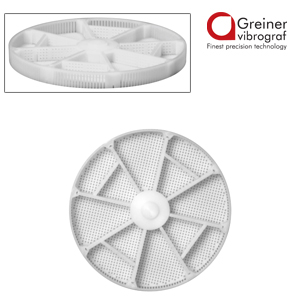 Reinigungskorb aus Kunststoff mit Ø 80mm, doppelter Außenwand und 12er Unterteilung. Passend für Greiner Vibrograf ACS900 / ACS921.