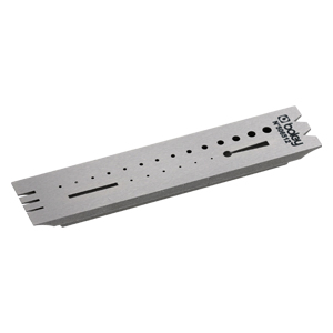 Universal-Nietamboss aus hochwerigem Stahl, feinst geschliffen mit 20 durchgehenden Bohrungen, einer durchgehenden, einer konischen Ausfräsungen und 5 Einschnitten.