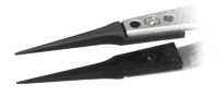 Präzisions-Kornzangen aus Schweizer Produktion in bester Verarbeitungsqualität. Antimagnetisch aus rostfreiem Edelstahl mit speziell gefertigten Carbonfaser-Spitzen. Ideal für Arbeiten an empfindlichen Bauteilen, wie z.B. Platinen, Brücken, elektronischen Bauteilen usw., wo Kratzer und Beschädigungen zu vermeiden sind. Hitzebeständig bis 300°C, sowie wiederstandsfähig gegen Chemikalien und agressive Lösungen. Spitzen auswechselbar.
