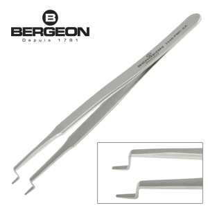 Kornzange mit gebogener Spitze (90°) aus antimagentischem Spezialstahl zum Abnehmen und Setzen von Zeigern. Swiss-Made.