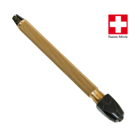 Stiftenklöbchen mit geriffeltem Messingheft, sowie zwei auswechselbaren Spannzangen.