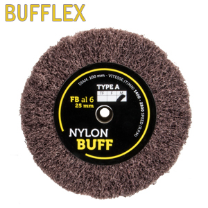 Bufflex Mattierbürsten aus Aluminiumoxid für eine gleichmäßige Oberflächenstruktur. Rundes Korn zum feinen Satinieren und Mattieren von Metallen. Auch zum Auffrischen, Reinigen alter angelaufener Metalle, sowie zur Aufarbeitung nach dem Beizen bestens geeignet.