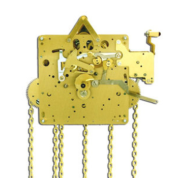 8 Tage Kettenzugwerk mit Pendel und 4/4 Westminster auf 5 Stab Gong. Die 5 Hämmer sind unten angebracht. Schlag alle 1/2 Stunden einmal und alle Stunden voll.