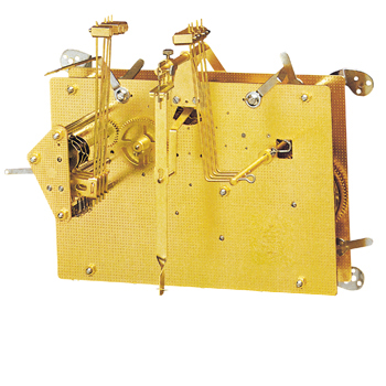 8 Tage Seilzugwerk mit Pendel, Ankerautomatik und 4/4 Westminster auf 8 Stab Gong. Die 8 Hämmer sind hinten angebracht. Schlag alle 1/2 Stunden einmal und alle Stunden voll. Volle Schlagabstellung oder automatische Nachtruhe von 22 bis 7 Uhr wählbar.