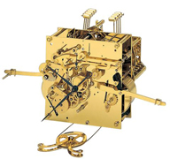 1/4 Seil-/Federzug-Pendelwerk mit Westminsterschlag auf 8-Stabgong, Gangdauer 7 Tage, Platinenmaß 131 x 131 x 2,0 mm, 4 Aeterna Bronze-Bouchons (Beisatzräder Schlagwerke), Palettenanker mit ruhender Hemmung (Graham) und Ankerautomatik, Sicherheitsaufzugsgesperr (Schlagwerke), Sekundenanzeige, Schlagabschaltung und automatischer Nachtabschaltung zwischen 22.00 und 7.15 Uhr.