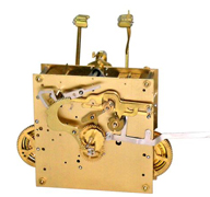 1/4 Kettenzugwerk mit Westminsterschlag auf 8-Stabgong, Gangdauer 7 Tage, Platinenmaß 131 x 131 x 2,0 mm, Kieniramic7 Massivanker mit ruhender Hemmung (Graham) und Ankerautomatik, Schlagabschaltung und automatische Nachtabschaltung zwischen 22.00 und 7.15 Uhr.