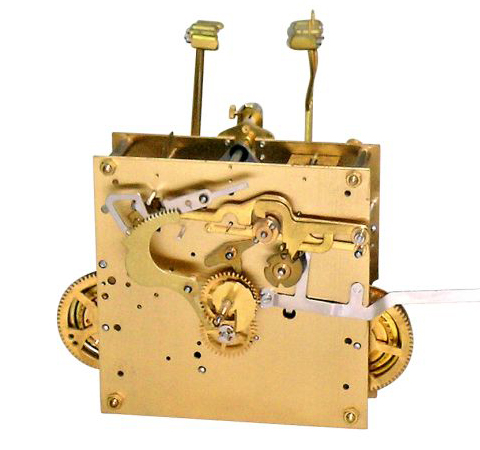 1/4 Kettenzugwerk mit Westminsterschlag auf 8-Stabgong, Gangdauer 7 Tage, Platinenmaß 131 x 131 x 2,0 mm, Kieniramic7 Massivanker mit ruhender Hemmung (Graham) und Ankerautomatik, Schlagabschaltung und automatische Nachtabschaltung zwischen 22.00 und 7.15 Uhr.