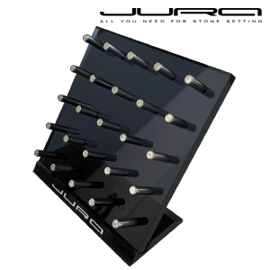 Praktischer Tischaufsteller aus Kunststoff zur Aufnahme von bis zu 25 Spannzangen.
