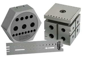 Nietambosse aus hochwertigem Stahl, feinst geschliffen in verschiedenen Formen, Bohrungen und Einschnitten.