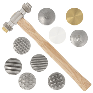 Ergonomisch geformter Texturhammer mit leicht auswechselbaren Textureinsätzen. Ideal zum Erstellen von verschiedenen und individuellen Oberflächen auf Metallen, wie Kupfer, Messing, Silber oder Gold.