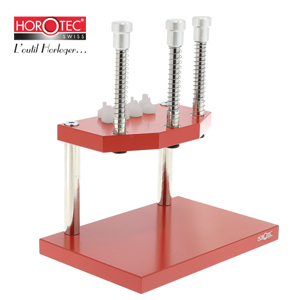 Zeigersetzwerkzeug "Horotec" mit 3 Führungsgestellen für Broschen, zum leichten Zeigersetzen bei Armband-, Taschenuhren.