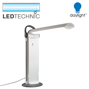 Die LED Tischleuchte “Daylight” ist eine kompakte, leicht transportable Tischleuchte für hohe Sehanforderungen. Kein Schalter – einfach aufklappen und die Lampe leuchtet! Dabei ist sie so kompakt und leicht, dass Sie sie überall mit hinnehmen können. Drehbarer Leuchtenkopf zum angenehmen Arbeiten. Mit der Daylight LED-Technologie bleiben Ihre Augen auch am Ende eines langen Tages entspannt. Flimmererfreies Licht, kein Stroboskopeffekt, keine Kopfschmerzen, keine geröteten Augen – damit ist das Arbeiten so natürlich und angenehm wie ein Spaziergang im Grünen. Der Leuchtkopf lässt sich um 360° verdrehen, um das Licht so ausrichten, wie Sie es zum Arbeiten brauchen. Die Lichtintensität ist stufenweise einstellbar (2000 - 1500 - 1000 Lux).