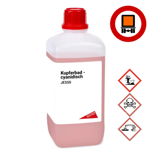 Das cyanidische Kupferbad JE550 ist ein universeller Kupferelektrolyt, der sowohl als Gestell- und auch als Trommelbad angewendet werden kann. Durch die exzellente Tiefenstreuung und Haftfestigkeit wird das Kupferbad als Vorverkupferung und somit als Unterschicht für weitere galvanische Verfahren eingesetzt. Die Schichten sind feinkörnig, leicht glänzend und decken gut.