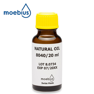 Moebius 8030: Flüssiges Öl mit guten Schmiereigenschaften. Ideal für bewegende und große Teile wie Pendel, Alarm und Zähler, die mäßigem Druck ausgesetzt sind.