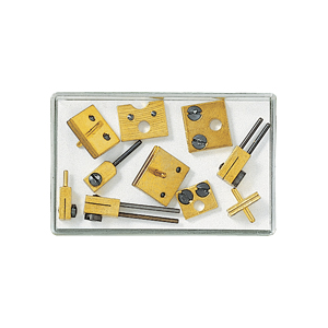Sortiment von Beschlägen und Mitnehmer für Drehpendeluhren. Je ein oberer und unterer Beschlag in drei verschiedenen Größen, sowie vier unterschiedliche Mitnehmer. Geschliffenes Messing mit gebläuten Stahlschrauben.