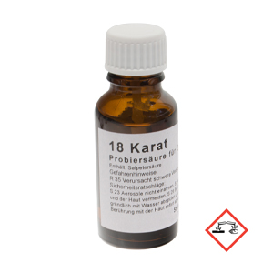 Die Gold-Prüfsäure 750/- wird mittels Strichprobe auf dem Prüfstein angewendet.