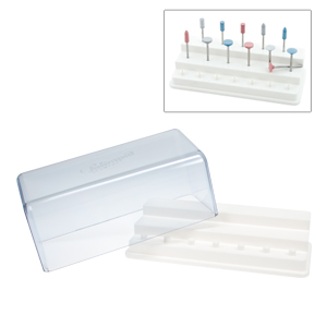 Praktischer Kunststoffständer mit durchsichtigem Deckel zur Aufbewahrung von Fräsern, Bohrern usw. mit Schaft-Ø: 2.35mm.