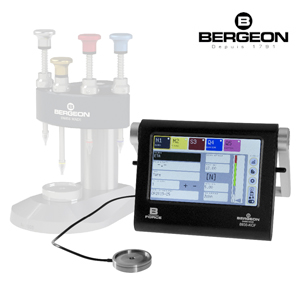 Vorrichtung zur Messung der Kraftübertragung beim Zeigersetzen. Der Sensor hat einen Durchmesser von 32mm und ist passend für alle gängigen Zeigerpressstöcke mit Basis 31mm. Die Messung wird auf einem übersichtlichen 5" Farbdisplay angezeigt, jede Brosche ist einzeln abrufbar.