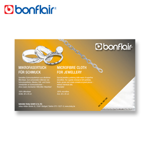 Spezielles Schmuckpoliertuch aus ultrafeiner Mikrofaser. Zum schonenden Entfernen von Schmutzpartikeln, Stäuben, Fett- und Cremerückständen an Schmuckstücken - ohne Zusatz chemischer Hilfsmittel. Waschbar!