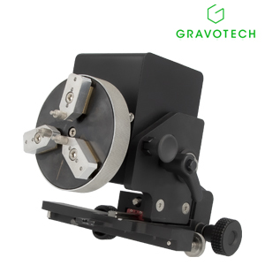 Schwenkbares Dreibackenfutter für die Innen- und Aussenmarkierung von Ringen, Trauringen und Armbändern mittels eines Laserstrahls.