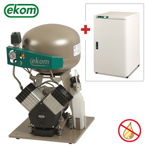 Der ölfreie EKOM Kompressor der neusten Baureihe sorgt für eine leistungsstarke, saubere und geräuscharme Druckluftversorgung für anspruchsvolle Anwendungen. Der Kompressor ist für den Dauerbetrieb ausgelegt und produziert bei 5 bar Überdruck 140 Liter/Min.. Durch seine Schalldämmbox ist dieser mit seinen 53 dB extrem leise, der integrierte Lüfter sorgt für genügend Luftzufuhr und sichert somit die Kompressorkühlung.