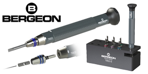 Bergeon Switch Untergruppen Schraubendreher Set NameAusführungSortimentFabrikatArt.-Nr.Schraubendreher-SetSwitchinkl. 5 AdapterBergeon511219 Sockel NameAusführungFabrikatArt.-Nr.SockelPOMBergeon511218 Ersatzklingen V-Form aus Edelstahl gehärtet 54 HRC NameKlingenbreiteFormMaterialVPEArt.-Nr.Ersatzklingen1.00 mmV-FormEdelstahl3 Stück511083Ersatzklingen1.20 mmV-FormEdelstahl3 Stück511084Ersatzklingen1.40 mmV-FormEdelstahl3 Stück511085Ersatzklingen1.60 mmV-FormEdelstahl3 Stück511086Ersatzklingen2.00 mmV-FormEdelstahl3 Stück511088Ersatzklingen2.50 mmV-FormEdelstahl3 Stück511089Ersatzklingen3.00 mmV-FormEdelstahl3 Stück511090