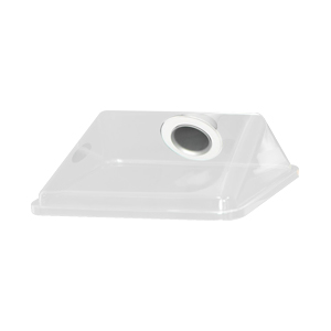Eckige Absaughaube in transparent zur Absaugung von Gasen, Rauch oder Staub, passend für Absaugarm Nr. 694200. Ideal zum Abdecken von Galvanikbädern.