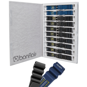 PU-Taucherbänder Sortiment Sortiment von 10 Polyurethan (PU) Taucherbänder mit Dekompressionstabelle und Edelstahlschließe, passend für viele Taucheruhren der Marke Citizen, Seiko uvm.. Alle Bänder werden in schwarz (8x) und dunkelblau (2x) und in sortierten Anstoßbreiten 18 - 24mm geliefert. Inklusive Vorlagemappe - GRATIS!