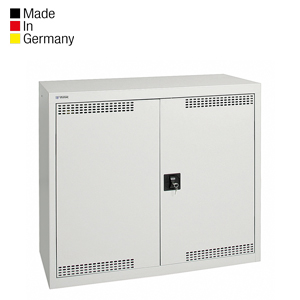 Zur ordnungsgemäßen und sicheren Aufbewahrung wassergefährdender Stoffe. Halten Sie Ihre Schadstoffe sicher unter Verschluss. Umweltschrank mit Zwangsbelüftung, Drehgriff-Dreipunkt-Schließung, Kartentasche und Schließleistenverkleidung. Made in Germany!
