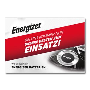 Text: BEI UNS KOMMEN NUR UNSERE BESTEN ZUM EINSATZ - WIR VERWENDEN ENERGIZER BATTERIEN
