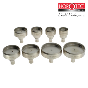Gängige Einsätze aus Edelstahl zum Öffnen und Schließen von geriffelten Gehäuseböden. Jetzt inkl. neuem Einsatz 34.0mm. Geeignet für die Reparatur von RX Uhren.
