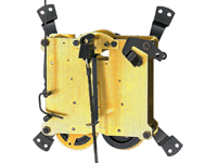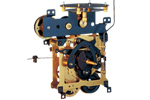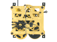 8-Tage Kettenzugwerk für Schwarzwald- (Schotten-) Uhren mit Pendel und Schlag auf Glocke. Der Schlag erfolgt alle 1/2 Stunden einmal bzw. alle Stunde voll. Der Hammer ist oben angebracht.