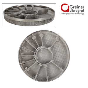 Reinigungskorb aus Metall mit Ø 80mm und 12er Unterteilung. Passend für Greiner Vibrograf ACS900 / ACS921.