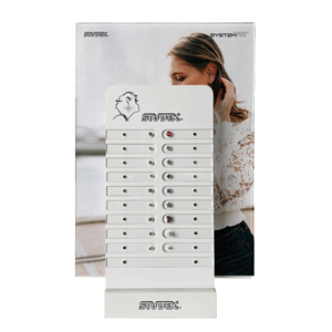 Hochwertiges Ohrstecker Display "Peggy" mit Kunststoffglaseinleger, passend für 18 Ohrstecker.