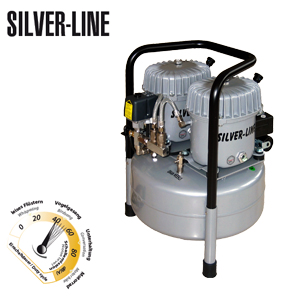 Der doppelmotorige, geräuscharme Silverline-Kompressor L-S100-25 wird mit Reduzierventil, Wasserabschneider und Feinstfilteraufsatz (5µ)für absolut wasserfreie Druckluft bis 8 bar geliefert. Dadurch ist er besonders zum Einsatz in Verbindung mit Sandstrahlgeräten geeignet.