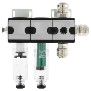 Fertig montierte Wartungseinheit aus Zink-Druckguss bestehend aus Vorfilter mit Sinterelement und Feinstfilter, sowie 3-fach Anschluss für Druckluftpistolen, Sandstrahlgeräte, WD-Prüfanlagen, Vakuum-Umschaltdüsen usw.. Durch das zusätzliche Filtern der Druckluft wird die Lebensdauer Ihrer Verbraucher verlängert. Die Wartungseinheit wird direkt mittels 6mm Druckluftschlauch am Kompressor angeschlossen und kann dank der vormontierten Wandhalterung problemlos an Wand oder Werktisch befestigt werden.
