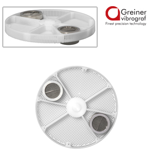 Reinigungskorb aus Kunststoff mit Ø 80mm und 6er Unterteilung, sowie zwei eingelassenen Körben aus Metall. Passend für Greiner Vibrograf ACS900 / ACS921.