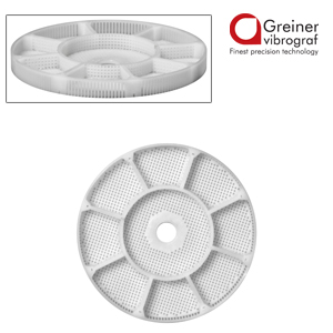 Reinigungskorb aus Kunststoff mit Ø 80mm und 9er Unterteilung, für Platinen Ø 39mm. Passend für Greiner Vibrograf ACS900 / ACS921.