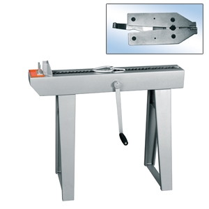 Bankziehmaschine auf Bockgestell mit Handkurbel, inklusive Rückholvorrichtung. Der Antrieb erfolgt mittels einer Kurbel sowie innenverzahntem Untersetzungsgetriebe. Inklusive Ziehzange.