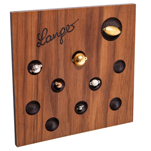 Nussbaum Display mit 10 magnetischen Aussparungen.