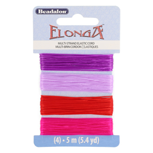 einzelnen dehnbaren Strängen, die miteinander verbunden sind und so für hervorragende elastische Eigenschaften sorgen. Die mehrsträngige Konstruktion von Elonga sorgt für einen weichen, seidigen Fall und ist ideal für leichte Perlen.