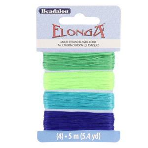 einzelnen dehnbaren Strängen, die miteinander verbunden sind und so für hervorragende elastische Eigenschaften sorgen. Die mehrsträngige Konstruktion von Elonga sorgt für einen weichen, seidigen Fall und ist ideal für leichte Perlen.