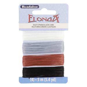 einzelnen dehnbaren Strängen, die miteinander verbunden sind und so für hervorragende elastische Eigenschaften sorgen. Die mehrsträngige Konstruktion von Elonga sorgt für einen weichen, seidigen Fall und ist ideal für leichte Perlen.
