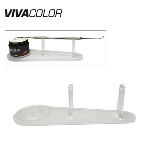 Zubehör zum Arbeiten mit Vivacolor Farben und Geräten. Die Ablage dient dazu, das Applikationsinstrument während der Bearbeitung abzusetzen. Zusätzlich ist das Abstellen einer 10 g bzw. 25 g Farbdose möglich.