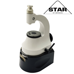 STAR Präzisions Triebnietmaschine aus Schweizer Produktion inklusive höhenverstellbarem Mikrometer-Sockel, sowie umfangreicher Ausstattung zum Nieten.