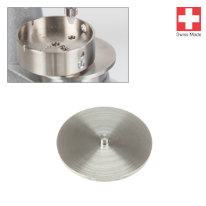 Zwischenplatte zur Aufnahme von Werkhaltern zum Setzen der dezentralen Zeigern, wie kleine Sekunde, Index- oder Kalenderzeiger. Die Zwischenplatte ist passend für alle Zeigersetz-Pressstöcke mit einer Basis von Ø 31 mm. Die Platte hat einen Außen-Ø von 45 mm und liegt somit plan im Pressstock. Der Stift mit einem Durchmesser von 3.25 mm ermöglicht das Umstecken von Werkhaltern zum Setzen der dezentralen Zeiger.