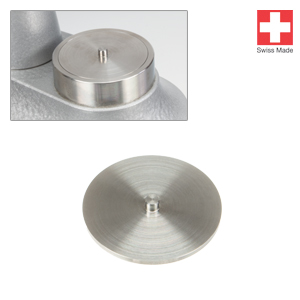 Zwischenplatte zur Aufnahme von Werkhaltern zum Setzen der dezentralen Zeigern, wie kleine Sekunde, Index- oder Kalenderzeiger. Die Zwischenplatte ist passend für alle Zeigersetz-Pressstöcke mit einer Basis von Ø 31 mm. Die Platte hat einen Außen-Ø von 31 mm und liegt somit plan im Pressstock. Der Stift mit einem Durchmesser von 3.25 mm ermöglicht das Umstecken von Werkhaltern zum Setzen der dezentralen Zeiger.