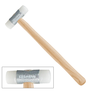 Nylonhammer mit austauschbaren Nylonköpfen und Eschenstiel, vermeidet Beschädigungen des Materials. Made in Germany.