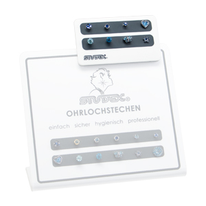 Das Zusatzdisplay für 8 Ohrstecker dient zum Erweitern der Präsentationsfläche Ihres vorhandenen Display Nr. 507445 oder 507447. Es wird oben am Rand aufgesteckt ind kann beliebig links oder rechts positioniert werden. Das Zusatzdisplay wird ohne Ohrstecker geliefert und kann gemäß eigener Sortierung bestückt werden.